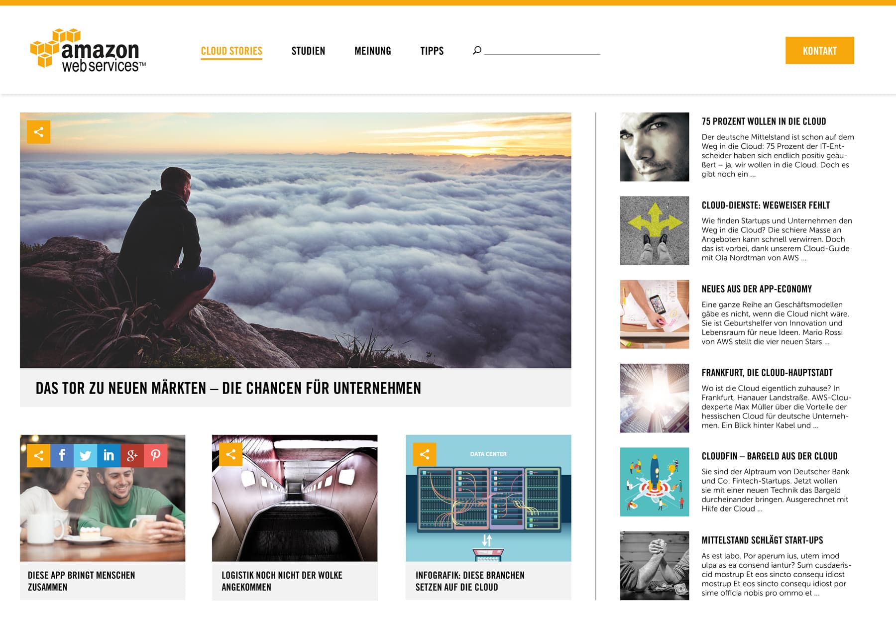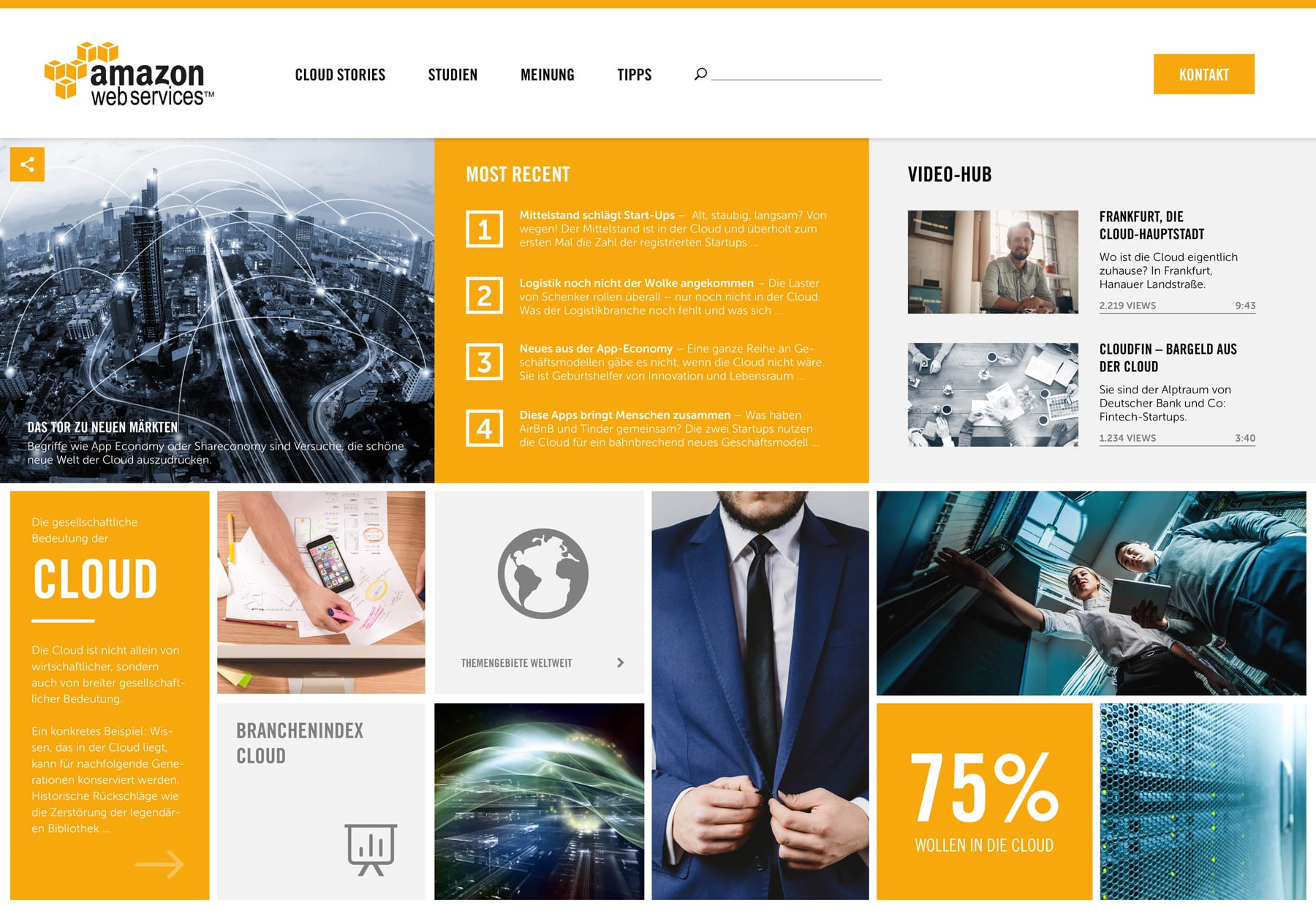 Content Marketing is King! In Kooperation mit Hotwire haben wir das Designkonzept des Amazon Webservices Content Hub entwickelt. Ziel war, das klassische Layout von Amazon aufzubrechen und den Content spielerisch für den User darzustellen sowie erlebbar zu machen.
