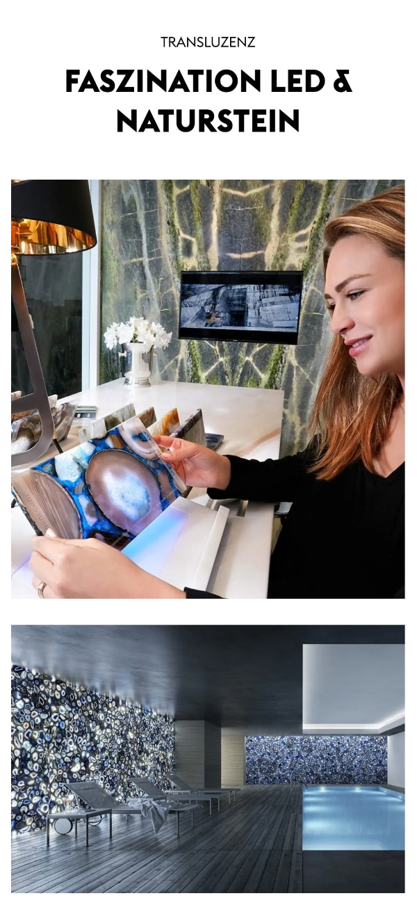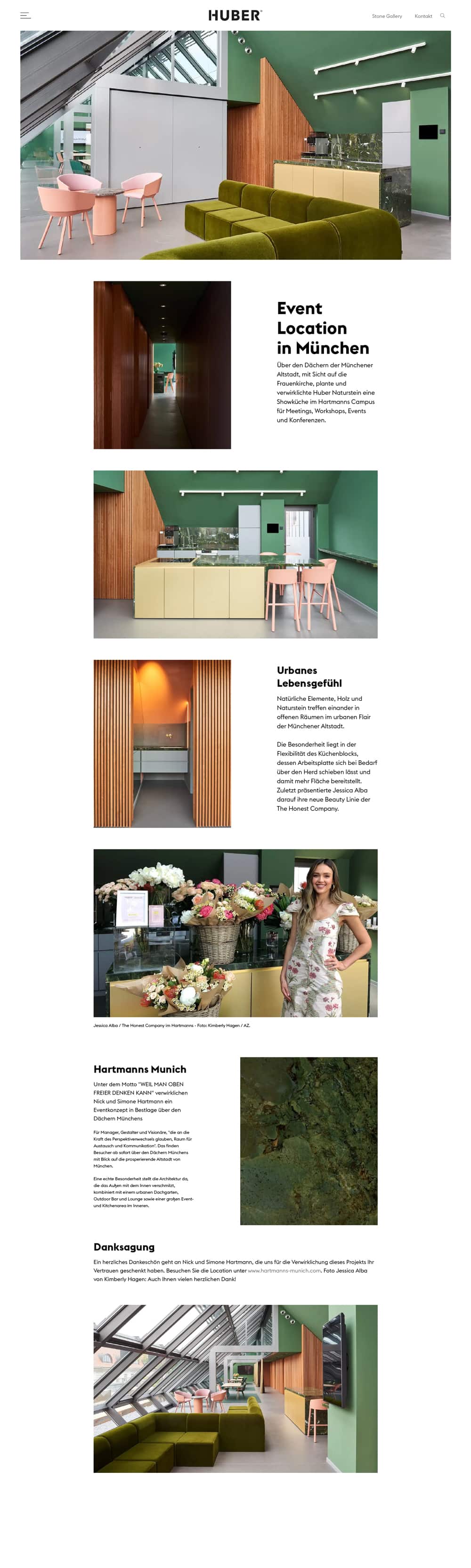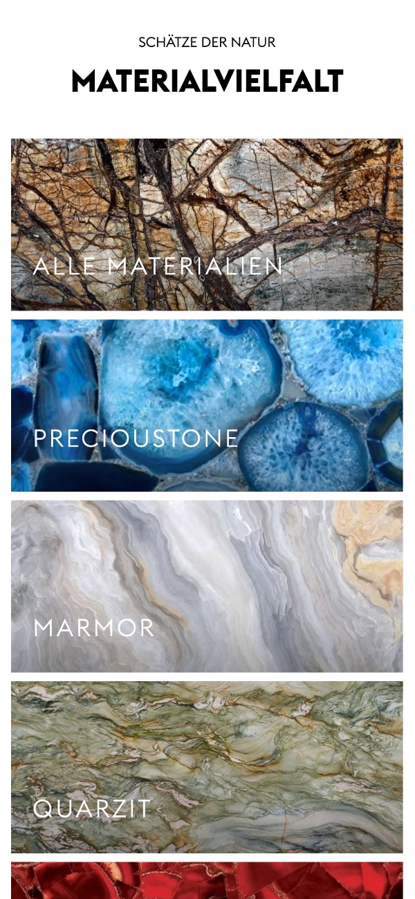 Naturstein digital und emotional erlebbar zu machen bestimmte die Hauptanforderung der Corporate Website, aber insbesondere für die Materialdatenbank. Dort präsentieren sich sortiert nach Farbe, Gesteinsart und Land knapp 1.000 Materialien, die detailliert um Informationen zu petrografischen Eigenschaften und empfohlenen Anwendungsbereichen ergänzt wurden.