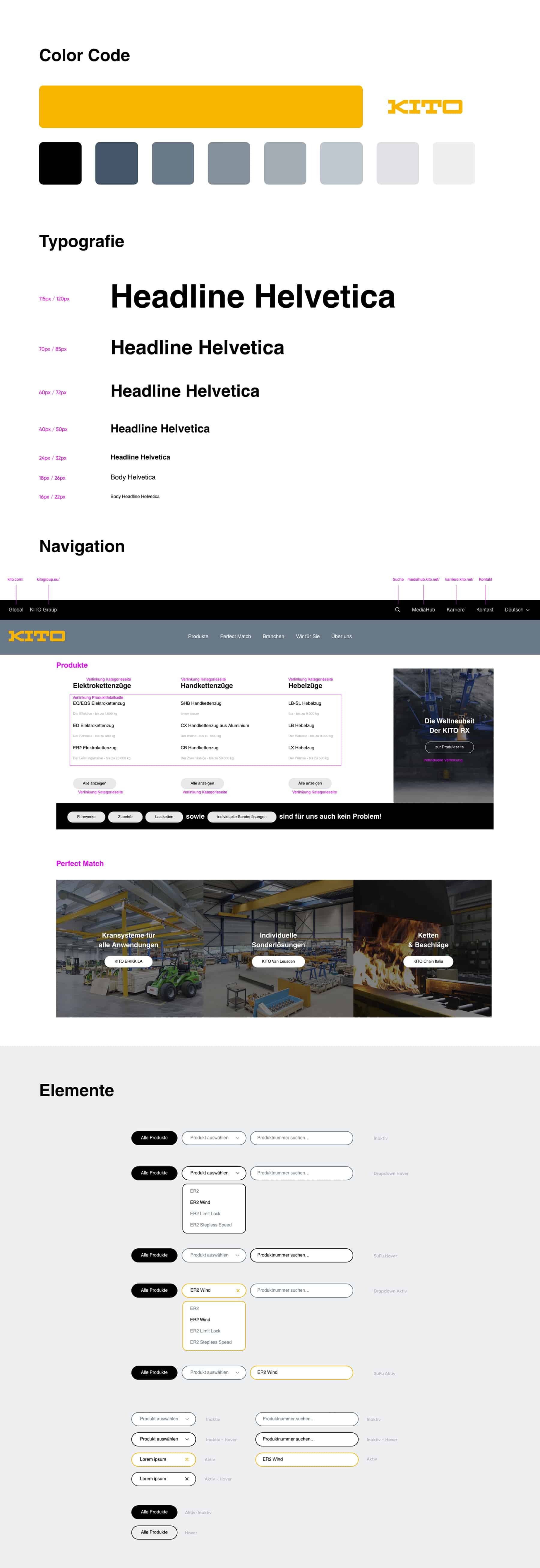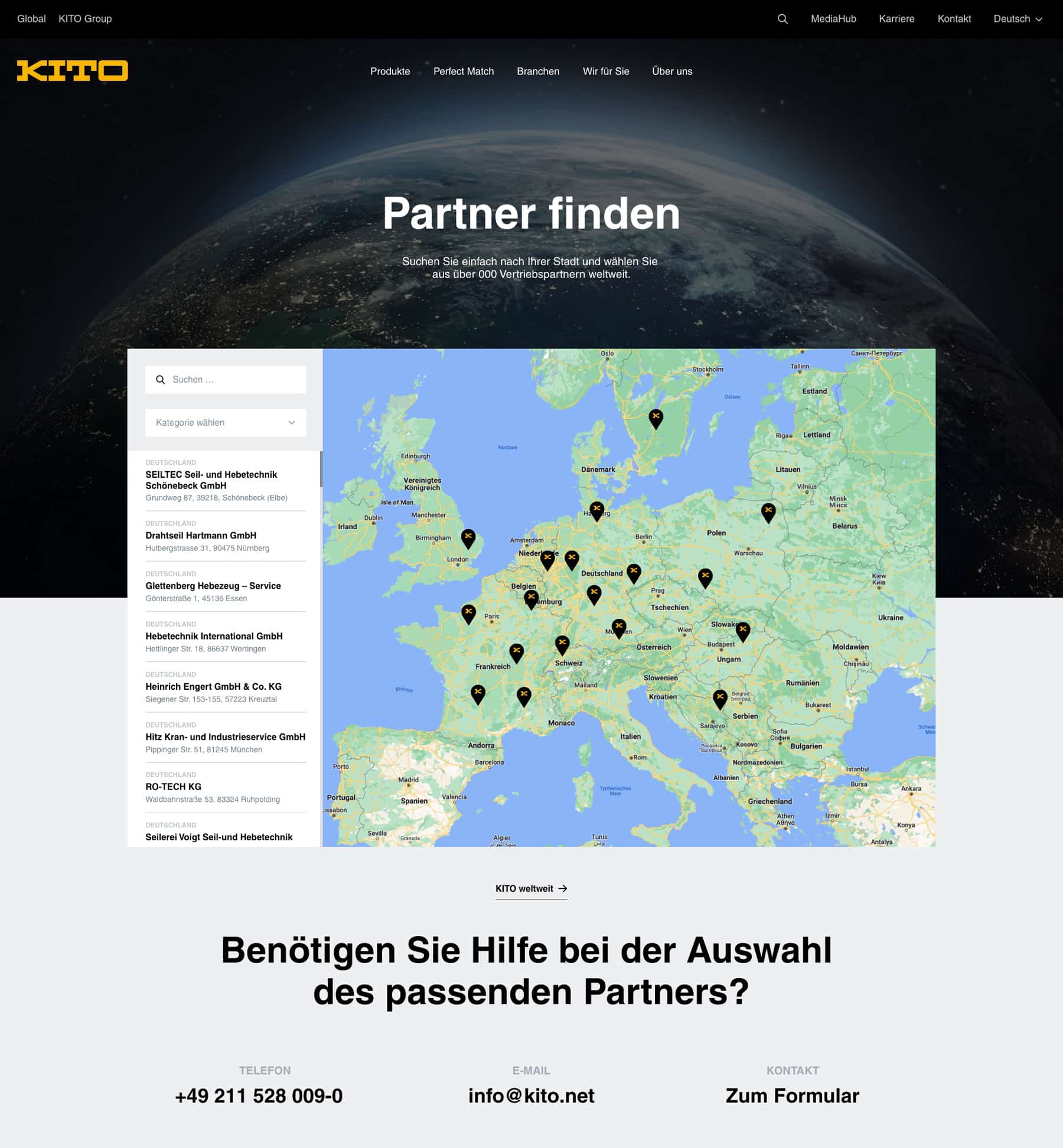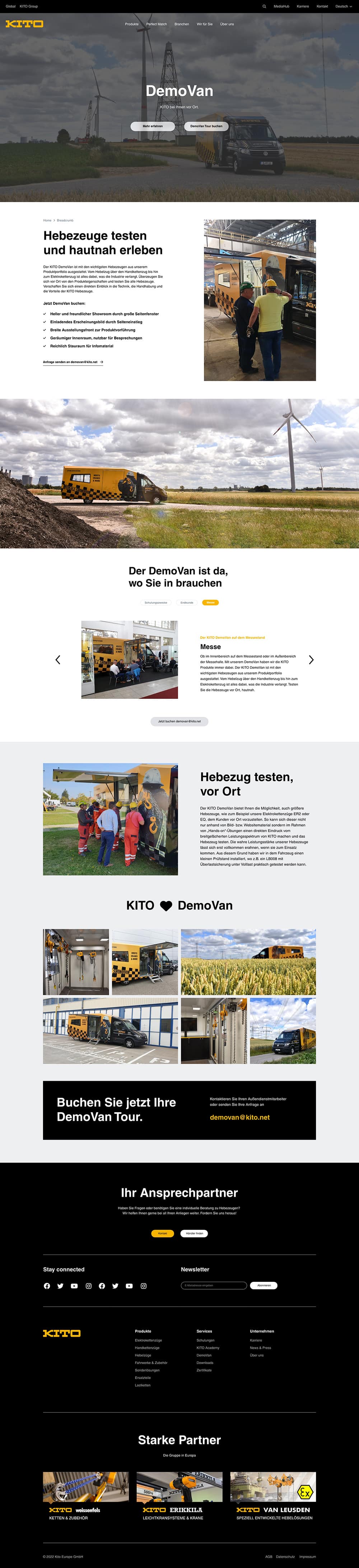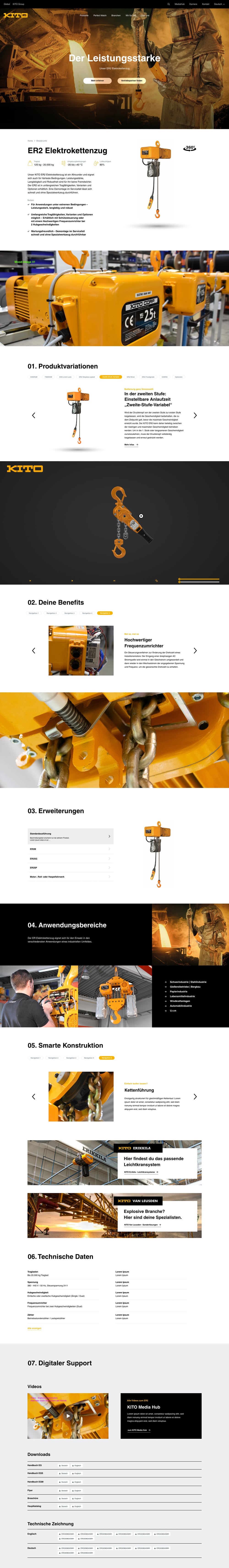 Wir haben den Relaunch der Website für Kito übernommen, mit dem Ziel, eine emotionale Produktwelt zu schaffen, die ein eigentlich technisch und sicherheitsbezogenes Produkt erlebbar macht. Die zentralen Attribute von Kito – Sicherheit, Zuverlässigkeit und Robustheit – sollten für die User spürbar werden.