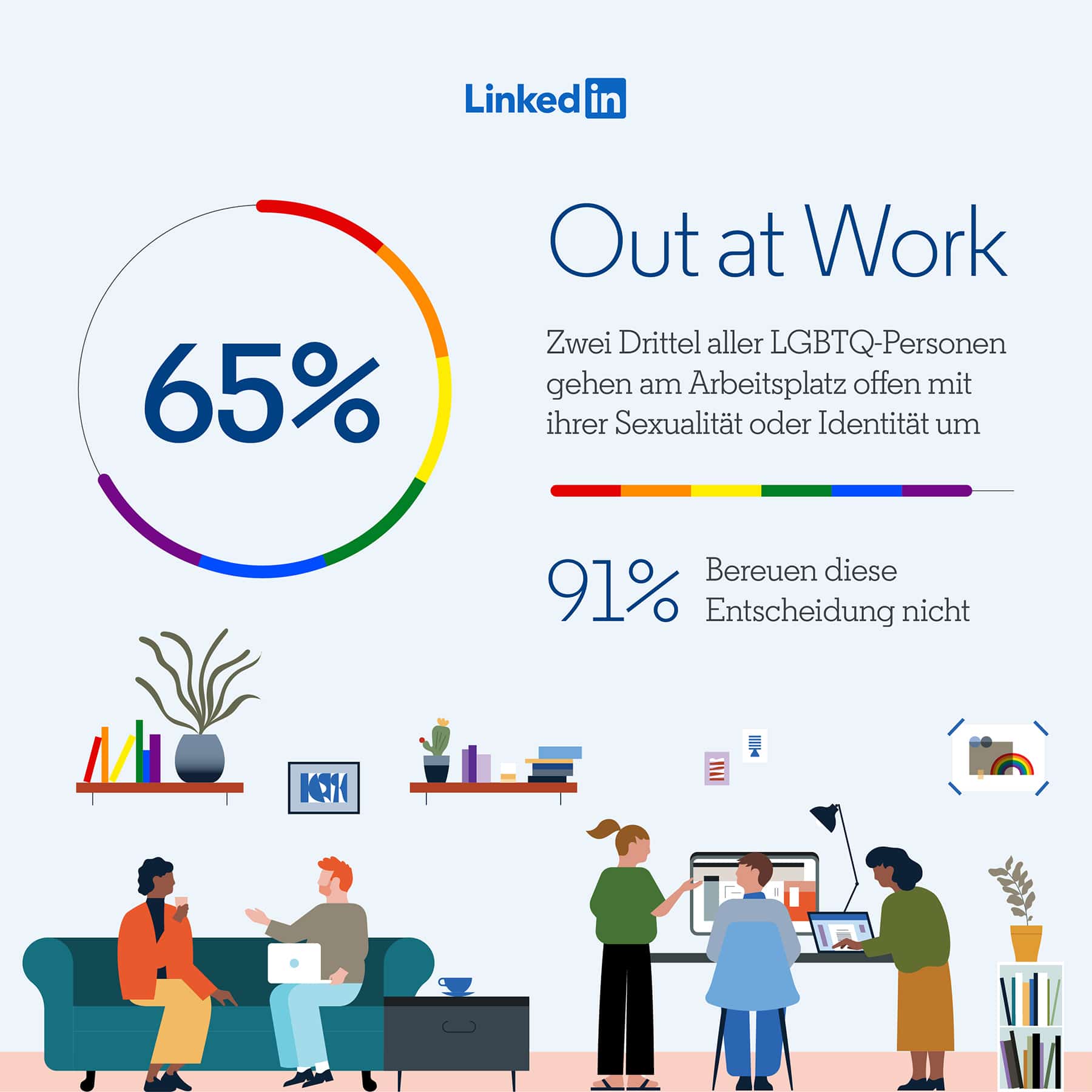 LinkedIn: LGBT-Community stellt deutschen Arbeitgebern überwiegend positives Zeugnis aus. Für die repräsentative Umfrage innerhalb der LGBT-Community im Auftrag von LinkedIn wurde eine Infografik erstellt. Die Grafik repräsentiert die wichtigsten Umfragedaten auf eine ansprechende, aufschlussreichere und fesselndere Weise.