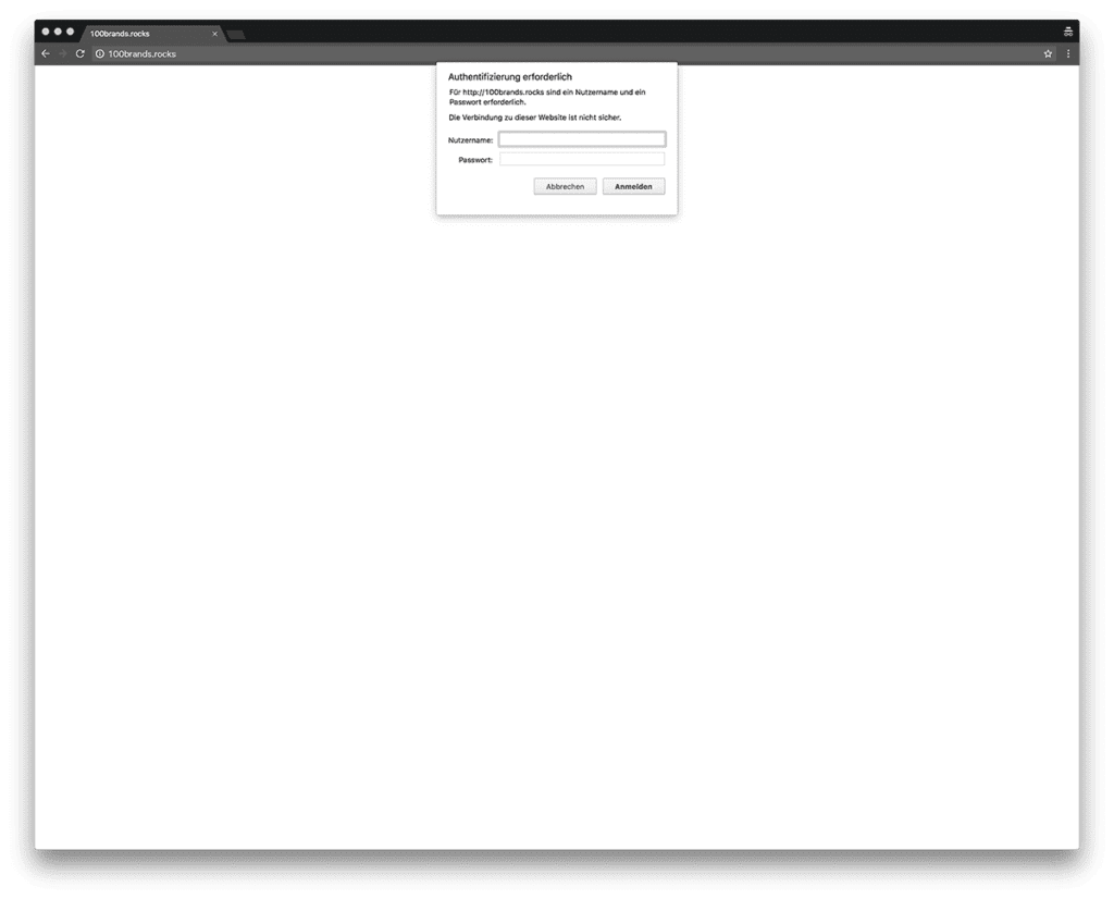 Nach erfolgreichem Einrichten deines Passwortschutzes solltest du sichergehen, dass die Nutzername- und Passwortabfrage funktioniert. Hierzu empfiehlt sich der Inkognito Modus von Google Chrome oder Safari. Alternativ bietet es sich an die Cookies zu löschen. Wenn alles geklappt hat, öffnet sich ein Abfragefenster und deine Seite ist geschützt.