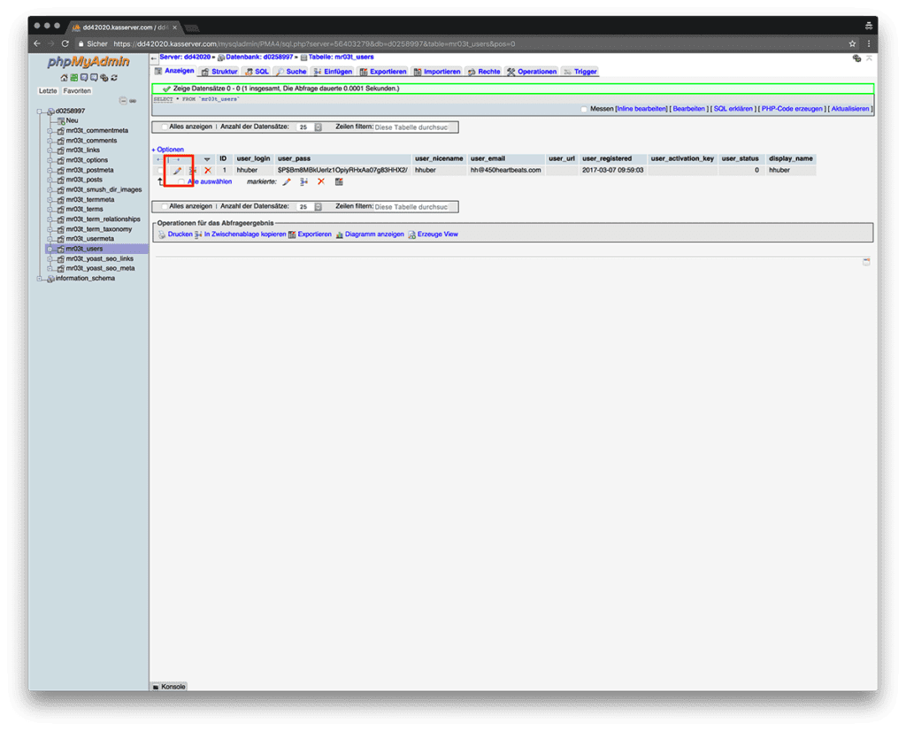 - Hierzu musst du auf die MySQl Datenbank deiner WordPress Installation zugreifen.